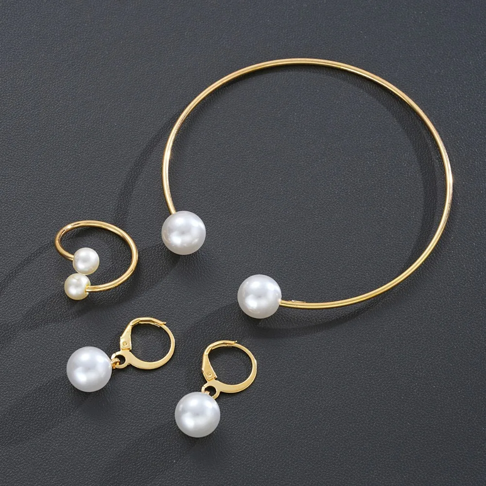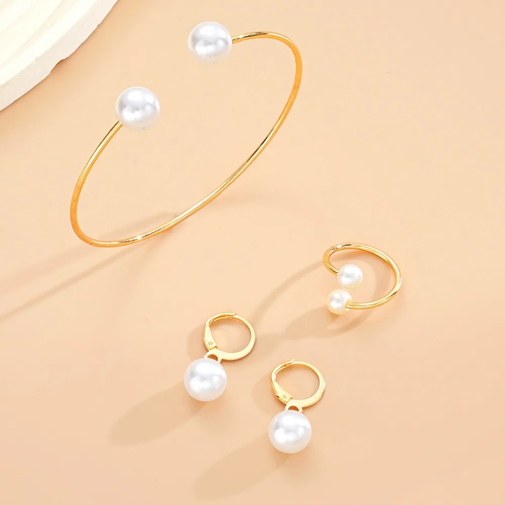3pcs Set Fashion Minimalism Pearl Pendant Earrings Ring Opening Bangle for Women Commuting Versatile Jewelry Sets Accessory Gift